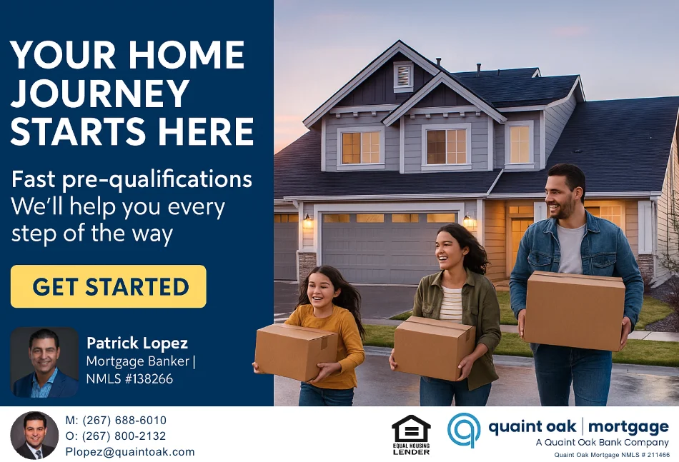 Questions? Contact Patrick Lopez |Mortgage Banker | [email protected] | Cell: (267) 688-6010 | Work: (267) 800-2132
